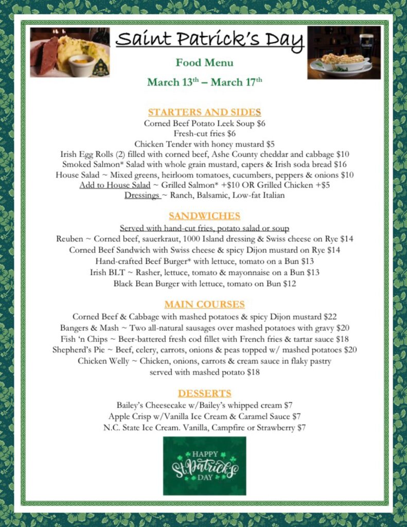 Visit us at traliirishpub.com or call 919-544-4141 for reservations.
